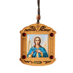 U532 Guardian Angel Mini Wooden Icon Shrine - Car Room Pendant - Christmas Tree Ornament on Rope - Icon Covered With Special Glass - Crystals and Incense 3 1/4 Inch