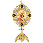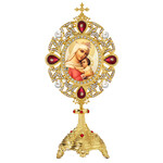 M-31B-102s Virgin of Vladimir - Pearl Jeweled Monstrance - Reliquary Style Icon Shrine 7 Inch