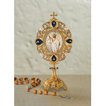 M-31B-24S Saint Nicholas Russian Icon - Monstrance - Reliquary Style Icon Shrine With Cross 7 Inch