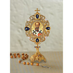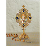 M-31B-24S Saint Nicholas Russian Icon - Monstrance - Reliquary Style Icon Shrine With Cross 7 Inch