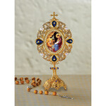 M-31B-69 Holy Family Icon - Monstrance - Reliquary Style Icon Shrine With Cross Pearls Jeweled 7 Inch
