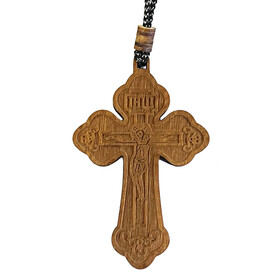 U505 Crucifix Wooden 2 Sided Cross Pendant - For Car Room 3"x 1 3/4"