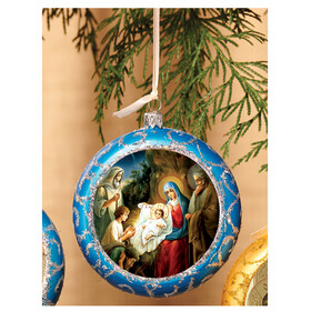 U513 Nativity of Christ Icon Religious Round Christmas Ornament - Not Breakable 4 3/4 Inch - Comes With Ribbon to Hang