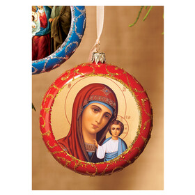 U514 Virgin of Kazan Religious Round Christmas Ornament - Not Breakable 4 3/4 Inch - Comes With Ribbon to Hang