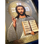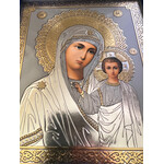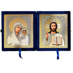 UD-7 Christ The Teacher and Virgin of Kazan Icon Diptych In Blue Velvet Case, 8 Inch, Silver Foil Icons