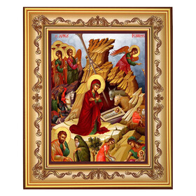 G9 Byzantine Nativity of Christ Icon in Wooden Frame - Wall Hanging With Stand 7 3/4 Inch tall
