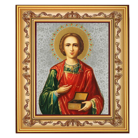 G93 Healer St Saint Panteleimon Icon in Wooden Frame - Wall Hanging With Stand 7 3/4 Inch tall