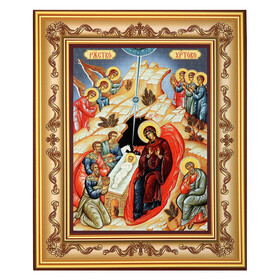 G42 Byzantine Nativity of Christ Icon in Wooden Frame - Wall Hanging With Stand 7 3/4 Inch tall