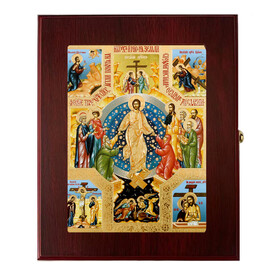 HB58 Resurrection Icon Decent Into Hell of Christ and Lifting up Of Adam and Eve Icon in WALL Hanging Or TABLE Box - Prayer Ropes, Beads, Jewelry Prayer Cards Anything Sacred - Catholic Orthodox icon Icon 7 1/2 Inch