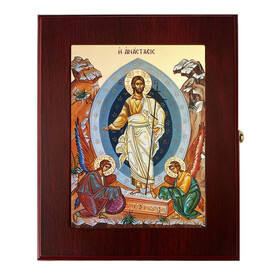 HBX5471 RESURRECTION GILDED - Byzantine Greek Icon WALL Hanging Or TABLE Box - Prayer Ropes, Beads, Jewelry Prayer Cards Anything Sacred - Catholic Orthodox icon Icon 7 1/2 Inch