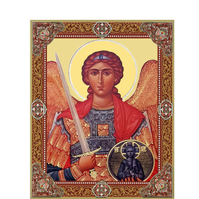 JC160-M ARCHANGEL Michael Gold Foil Wooden Icon 4 3/4 inch, With Hook For Hanging on Wall and Stand for Standing