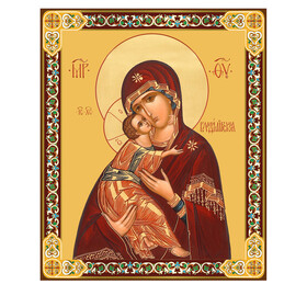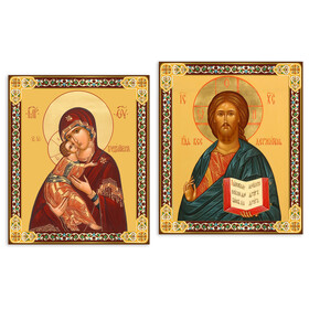 JC167-168-M Christ The Teacher & Virgin of Vladimir Gold Foil Wooden Icon 4 3/4 inch, With Hook For Hanging on Wall and Stand for Standing