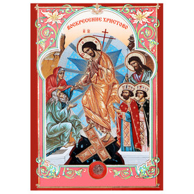 JC172-L Resurrection of Christ Three Bar Cross Orthodox Christian Catholic Icon Gold Foil Wooden Icon 7 1/2 inch, Wall Hanging & Standing