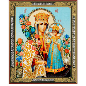 JC176-L Unfading Bloom Virgin Mary Christ Gold Foil Wooden Icon 7 1/2 inch, Wall Hanging & Standing