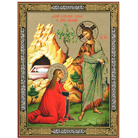 JC179-L Jesus Christ Appearing to Mary Magdalene - Wooden Icon Gold Foil 7 1/2 inch, Wall Hanging & Standing