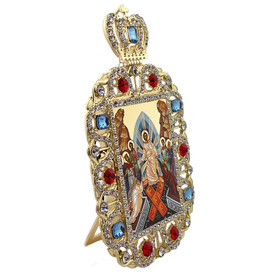 Measures top to bottom 5 3/4 inch tall x 3 3/4 inch wide - icon part 2 3/4 inch x 2 inch wide