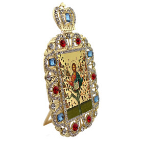 Measures top to bottom 5 3/4 inch tall x 3 3/4 inch wide - icon part 2 3/4 inch x 2 inch wide