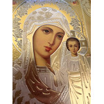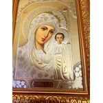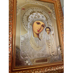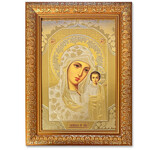 U542 Virgin of Kazan in Gold Frame - Icon Covered With Glass - Gold Embossed Icon Gold and Silver Foiled - Wall Hanging - High Quality - 14 1/2"x10 1/2"