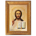 U542-543 Pair - Virgin of Kazan and Christ The Teacher in Gold Frame - Each Icon Covered With Glass - Gold Embossed Icon Gold and Silver Foiled - Wall Hanging - High Quality - 14 1/2"x10 1/2"