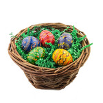 B7012-1 Ukrainian Easter Pysanky Eggs - 5 Miniature Hand Painted Eggs in a Basket With Resurrection of Christ