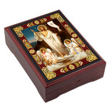 Box-17 Holy Family Wooden Icon Box For Rosary, Jewelry, Keepsake Icon Box, Lined With Velvet High Quality 5 1/16"x4 1/16"