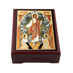 BOX-20 Resurrection of Christ With Angels - Wooden Icon Box - Keepsake Box For Prayer Beads, Rosary, Jewelry - Lined With Velvet - High Quality - Religious Gift Idea 5 1/16"