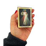 JC23-S Divine Mercy Icon - Gold Foil Wooden Icon 3 inch, Gold foil Cross on the Back Side
