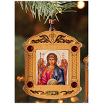 U524 ARCHANGEL RAPHAEL Wooden Shrine - Christmas Tree Ornament - Wooden Icon Shrine Pendant Ornament on Rope - Icon Covered With Special Glass - Crystals and Incense 4 inch tall