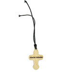 U549 Wooden Cross Three Bar on Rope - On The Back - SAVE US - In Slavonic 2 1/4"x1 1/2"- Made in Ukraine