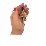 U592 Wooden Icon Standing Cross With Icons "Holy Trinity, Crucifixion of Christ, Virgin Mary and St John The Beloved & Angel" - Car Room Desk Wooden Cross - Church Domes on the Back Side 3 1/16 Inch x 2 1/4 inch