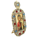JC10-M Virgin of Kazan Wooden Icon Gold Foil - Wooden Icon Gold Foil 4 3/4 inch, With Hook For Hanging on Wall and Stand for Standing, Orthodox Catholic icon