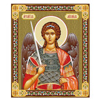 JC32-M St Archangel Michael Gold Foil Wooden Icon 4 3/4 inch x 2 3/4, With Hook For Hanging on Wall and Stand for Standing
