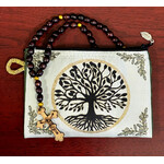 CP26U331 Set of 2 - Tree of Life Pouch With Wooden Prayer Beads 33 Beads - 2 Sided Tapestry Keepsake Pouch