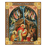 JC35-L Nativity of Christ Byzantine Style Gold Foil Wooden Icon 7 1/2 inch, Wall Hanging & Standing