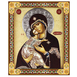 JC4-S Virgin of Vladimir Gold Foil Wooden Icon 3 inch, Gold foil Cross on the Back Side