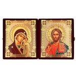 DIP-2-M Virgin of Kazan and Christ The Teacher Diptych in Velvet Case 5" - Gold Foil Icons - Set in a Beautiful Faux Velvet Case