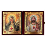 DIP-3-S Sacred Heart of Jesus and Mary Icon Diptych in Velvet Case 3 1/4" - Gold Foil Icons