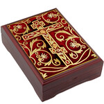 BOX-10 Three Bar Cross - Wooden Icon Box - Keepsake Box For Prayer Beads, Rosary, Jewelry - Lined With Velvet - High Quality - Religious Gift Idea 5 1/16"