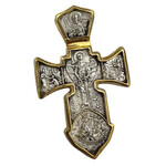 EC-53-CP24 Sterling Silver 925 24 kt Gold Plated Cross - LARGE CROSS Crucifixion FOR MAN - Trinity St Nicholas Angel Saints Reversible!