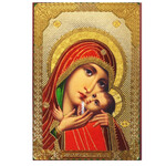 IR-410S SPECIAL PRICE GOLD AND SILVER FOILED Mounted on Wood - Virgin of Smolensk With Christ Child 8 3/4"