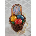 B7012J105 Set of 3 Ukrainian Easter Basket With the 3 Hand Painted Pysanky & Arched Icon of Resurrection of Christ