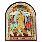 J-106 Resurrection of Christ With Angels - Gold Foil Arched Icon 4"x 3 1/4"