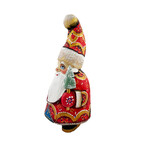 700-42-3 Russian Hand Made Wooden Santa Claus Figurine Hand Painted Red, Santa Holding Tree 6 1/2 inch tall