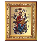 GX4926 Virgin and Child, Queen of the Universe, Full Body - Gold Gilded Byzantine Greek Icon - in Wooden Frame Decorated With Crosses Comes With Stand For Standing and Hook For Hanging on Wall 7 1/4"x5 3/4"