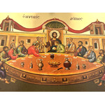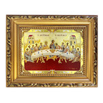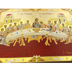 X4531 Last Supper - Gold Gilded Byzantine Greek Icon - in Wooden Frame Decorated With Crosses Comes With Stand For Standing and Hook For Hanging on Wall 7 1/4"x5 3/4"