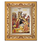 GXX4439 Resurrection Christ' S Descent Into Hell - Gold Foiled Byzantine Greek Icon - in Wooden Frame Decorated With Crosses Comes With Stand For Standing and Hook For Hanging on Wall 7 1/4"x5 3/4"