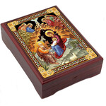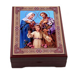 BOX-34 Holy Family - Wooden Icon Box - Keepsake Box For Prayer Beads, Rosary, Jewelry - Lined With Velvet - High Quality - Religious Gift Idea 5 1/16"