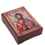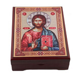 BOX-3 Christ The Teacher - Wooden Icon Box - Keepsake Box For Prayer Beads, Rosary, Jewelry - Lined With Velvet - High Quality - Religious Gift Idea 5 1/16"