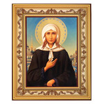 G47 Saint Xenia Orthodox Icon Framed in Wooden Frame Decorated With Crosses - Wall Hanging With Stand 7 3/4 Inch tall