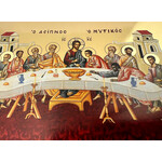 GXX4531 Last Supper - Gold Gilded Byzantine Greek Icon - in Wooden Frame Decorated With Crosses Comes With Stand For Standing and Hook For Hanging on Wall 7 1/4"x5 3/4"